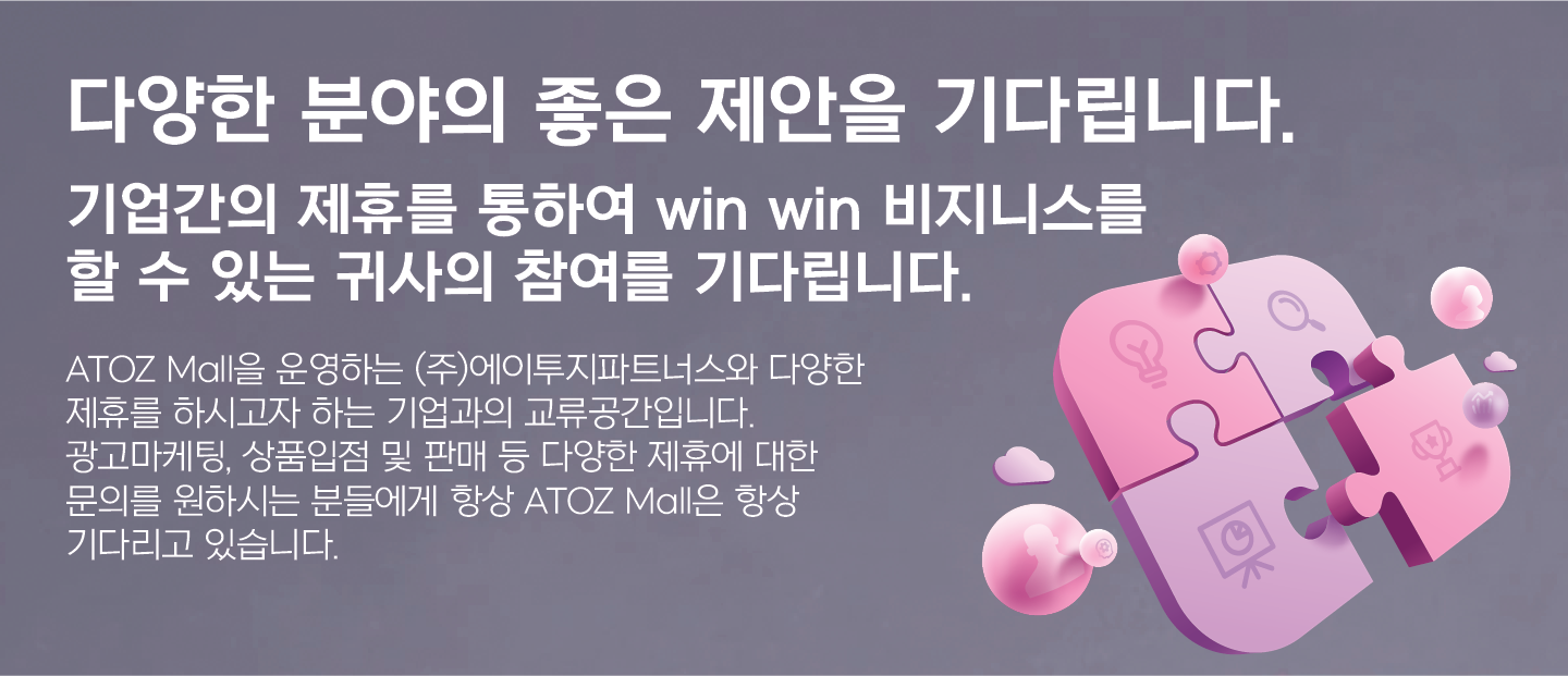 ATOZ Mall은 (주)에이투지파트너스가 운영하는