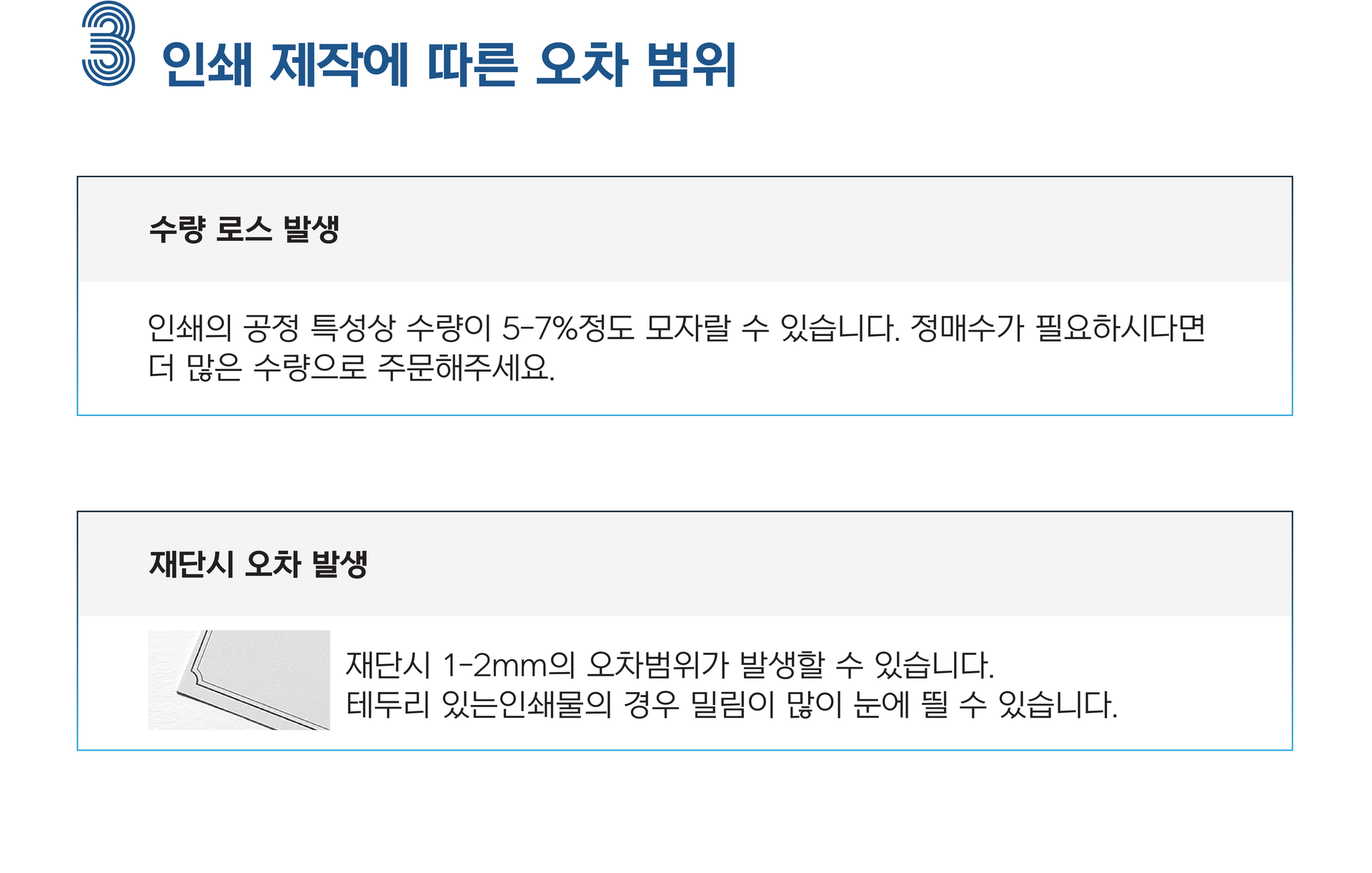아래의 유의사항들은 공정상 모든 인쇄소에서 발생하는 사항으로