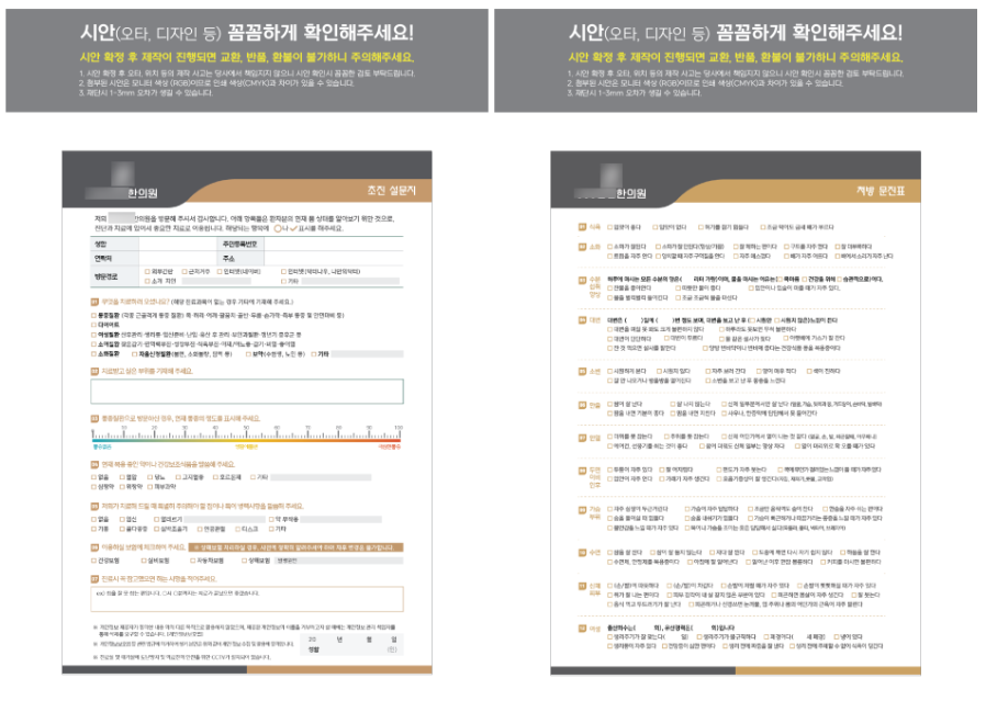 - 프로젝트명 : 인천 청라동 한의원 문진표, 다이어트설문지 등 제작
