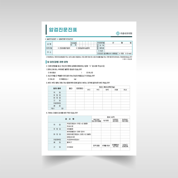 수면내시경 동의서 / 암 검진 문진표 3