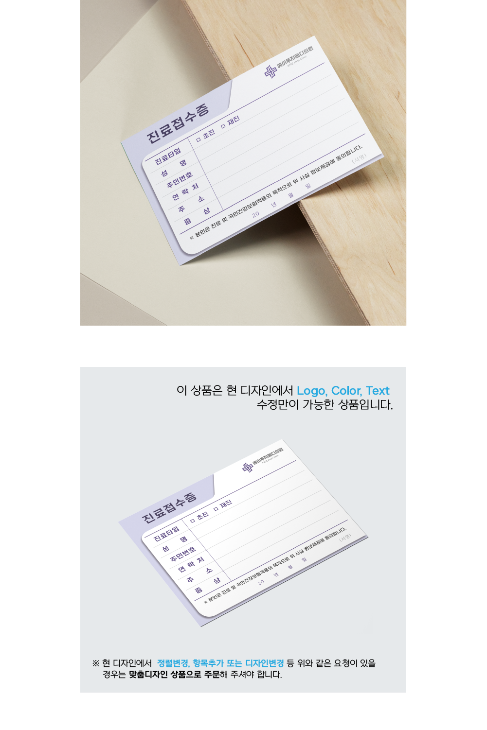 - 인쇄 공정상 3~5% 정도의 수량 오차와 재단 시 1~2mm정도의 재단 밀림 오차가 발생할 수 있습니다.