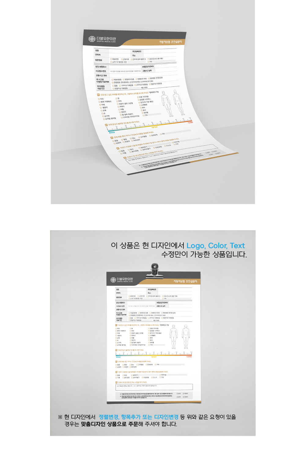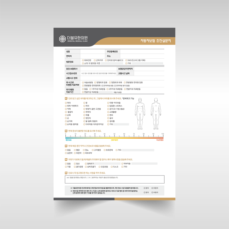 한의원 자동차보험 초진설문지